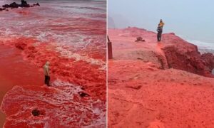 A well-known beach turned blood-red as intense rainfall hit the mineral-laden shoreline. Iran . Videos shared online revealed how the heavy rain illuminated the Silver